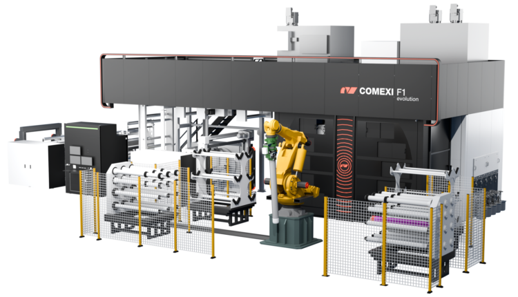 Its exceptional robustness and drying capability make it the ideal flexo press to increase productivity in the most challenging jobs. The new F1 Evolution can be equipped with a robotic arm for sleeve and anilox changes, as well as other automations from the GeniusTech range developed by Comexi, such as Genius Print for initial setup with a single touch, Genius Dry for adaptable and energy-efficient drying, Genius Flow for automatic and fast cleaning, or its ergonomic design that facilitates maintenance and cleaning. Comexi, with its commitment to excellence and market problem-solving, once again demonstrates its leadership in the industry.